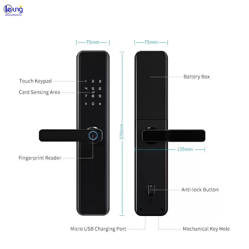 | روش های باز کردن قفل | برنامه Tuya WiFi / برنامه TTlock، رمز عبور، اثر انگشت، کارت، کلید، پورت USB |