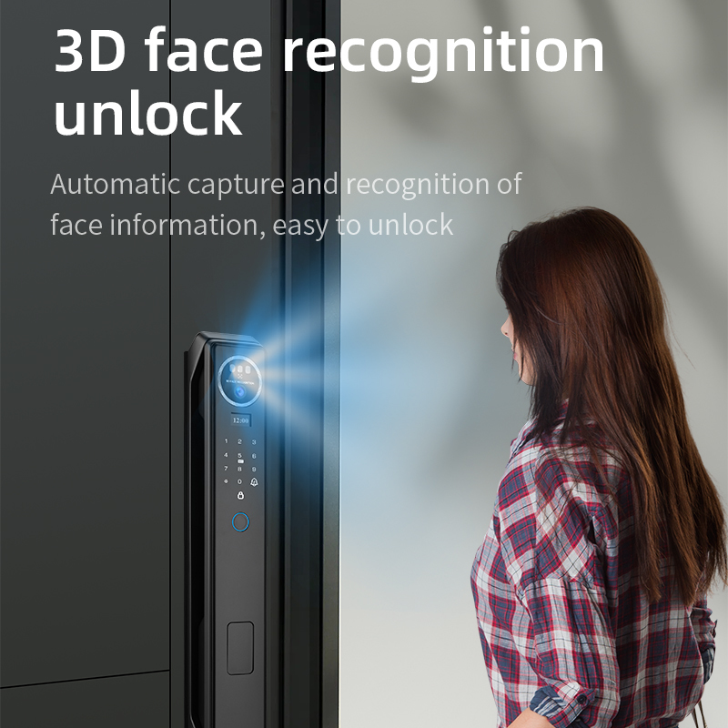 ◊ روش های باز کردن قفل متعدد – پشتیبانی از اثر انگشت، تشخیص چهره سه بعدی، چاپ کف دست، رمز عبور، کارت IC، کلید مکانیکی و کنترل از راه دور برنامه Tuya.