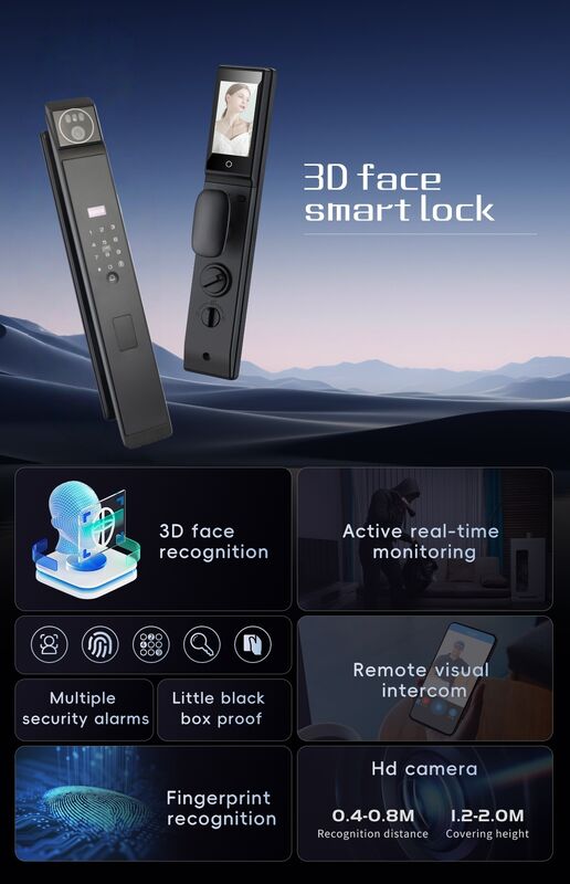 | برجسته کردن: | قفل تمام اتوماتیک قفل هوشمند درب,تشخیص چهره سه بعدی قفل درب تشخیص چهره,قفل هوشمند Tuya Unlock رگ کف دست,3D Face Recognition Face Recognition Door Lock,Palm Vein Unlock Tuya Smart Lock |