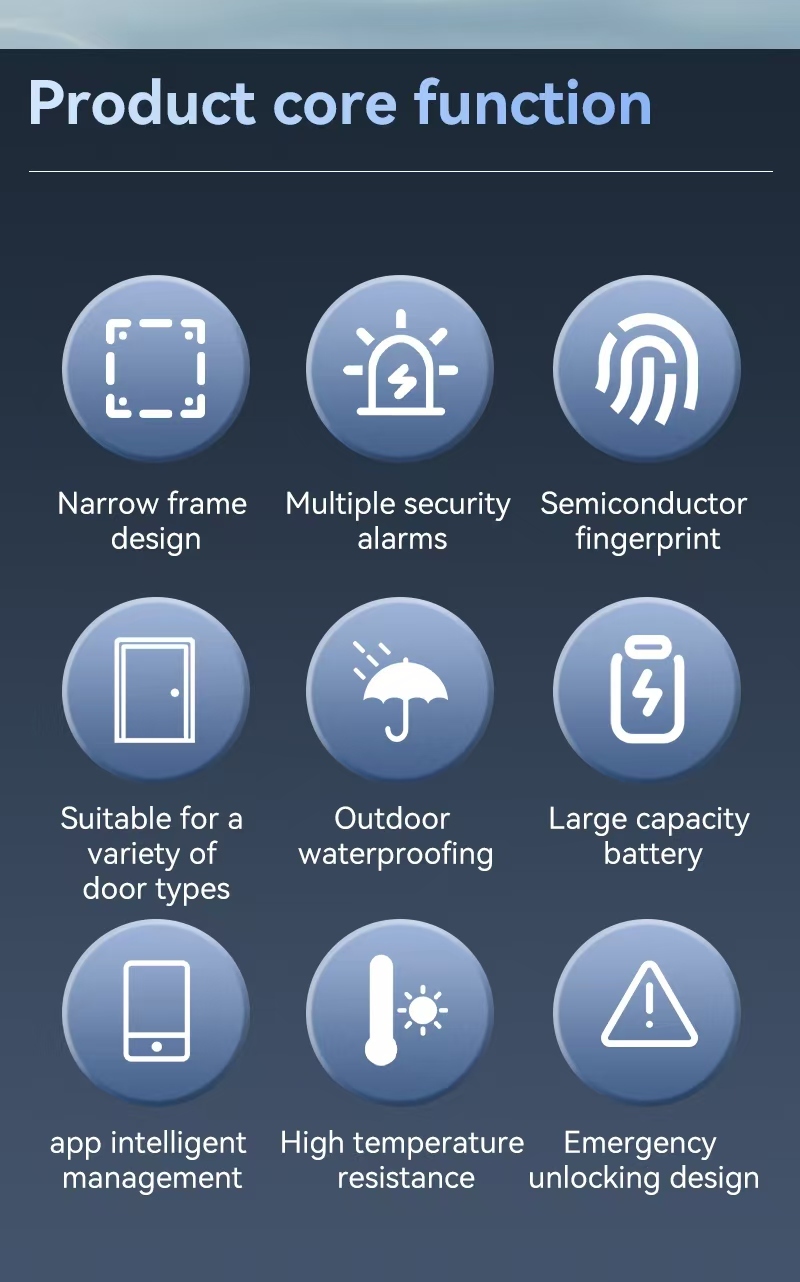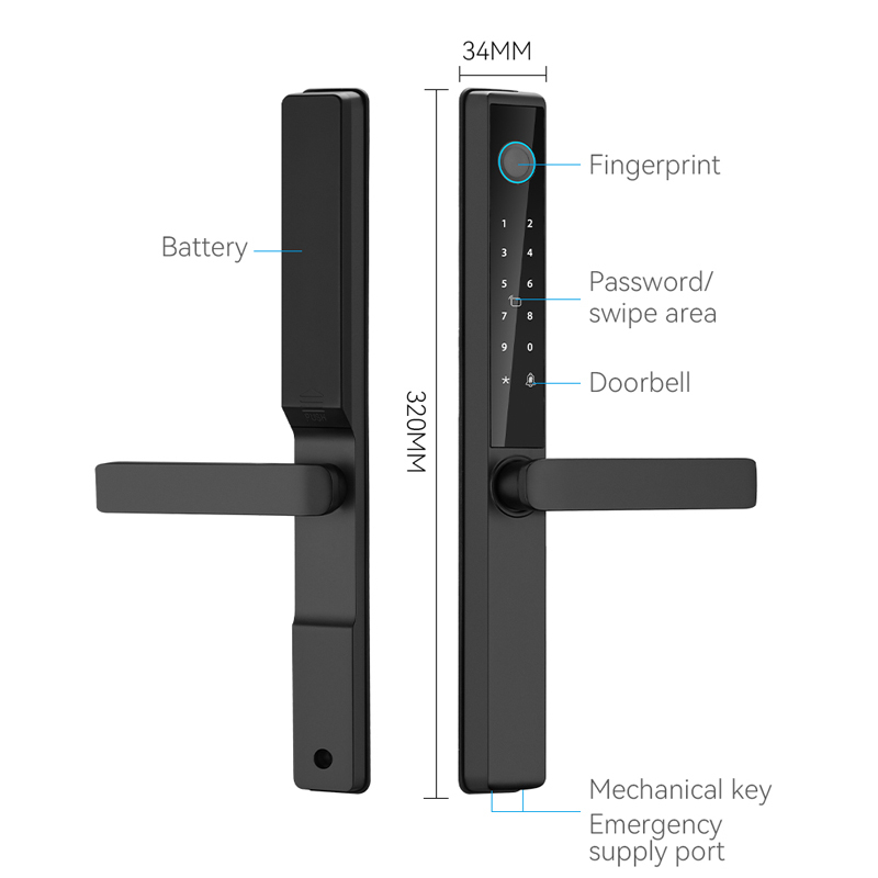 | برجسته کردن: | قفل هوشمند ضد آب درب,قفل هوشمند اثرانگشتی درب,قفل درب سازگار با تویا,fingerprint smart door lock,Tuya compatible door lock |