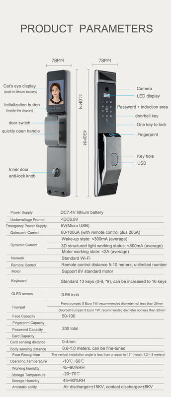 | ضخامت درب: | 40 تا 110 میلی متر | روش های باز کردن قفل: | تویا وای فای، رمز عبور، اثر انگشت، کارت، کلید |